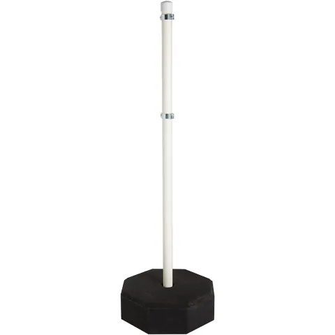 This recycled rubber sign post system is a moveable PVC sign post with recycled rubber base for indoor and outdoor use.