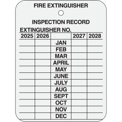Rigid 0.20 Aluminum Fire Extinguisher Inspection Record tags won't rust, tear or fade when used in harsh indoor or outdoor applications.