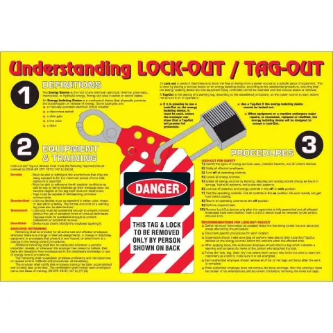 Brady 105626 "Understanding Lock-Out / Tag-Out" Wall Chart Laminated Cardstock Black Red White on Yellow 20" x 29"