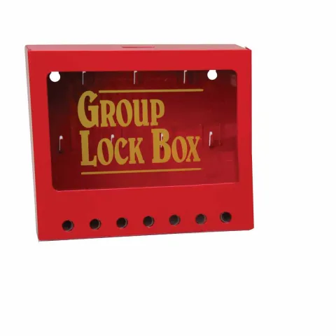 Brady 105714 Metal Wall Mounted Group Lockout Boxes Powder-coated Steel Yellow on Red 7" x 8"