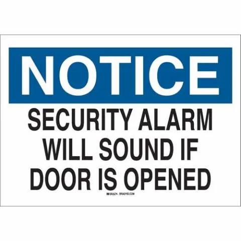 Brady 116200 Sign Notice Security Alarm Will Sound if Door is Opened B-563 Polypropylene 10"x14" Black Blue on White