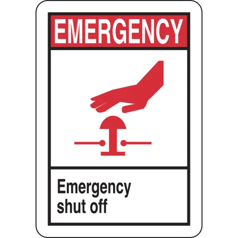Brady 119257 Sign "Emergency Shut Off" B-302 Polyester with Polyester Overlaminate 10"x7" Black Red White