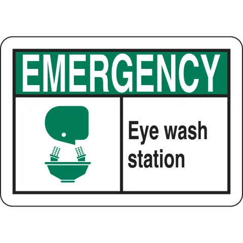 Brady 119761 10 in H x 14 in W Black, Green, White Aluminum Sign "Emergency Eye Wash Station"