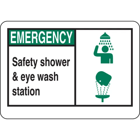 Brady 120665 Sign "Emergency Safety Shower and Eye Wash Station" B-302 Polyester with Polyester Overlaminate 7"x10" Black Green