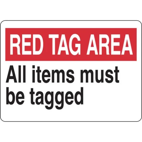 Brady 122270 Sign Red Tag Area All Items Must Be Tagged B-401 Polystyrene 7"x10" Red on White