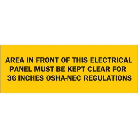 Brady 122579 "Area in Front of this Electrical Panel Must Be Kept Clear for 36 inch OSHA-NEC Regulations", 10" x 14", Sign