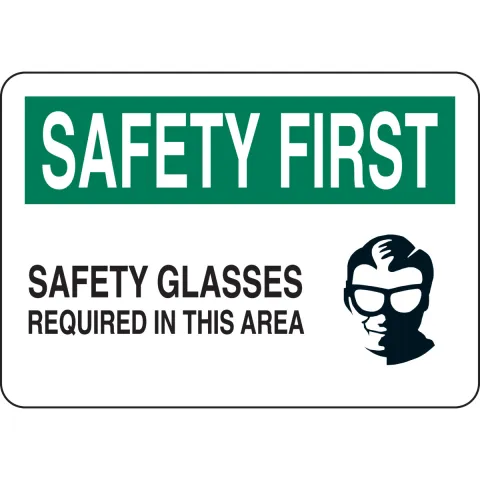 Brady 123828 Sign "Safety First Safety Glasses Required in This Area" B-401 Polystyrene 7"x10" Black Green on White