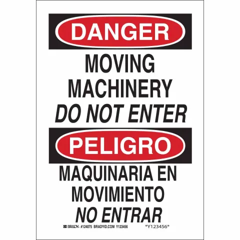 Brady 124077 Bilingual DANGER Moving Machinery Do Not Enter Sign, Polystyrene, 14in x 10in
