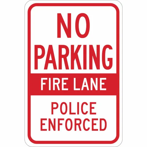 Brady 124321 "No Parking Fire Lane Police Enforced" Sign, Polystyrene, 18" x 12"