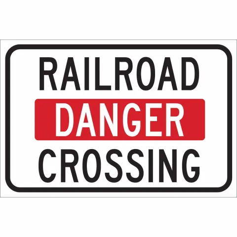 Brady 124475 12 in H x 18 in W Black, Red on White Polyester with Polyester Overlaminate Sign "Railroad Danger Crossing"