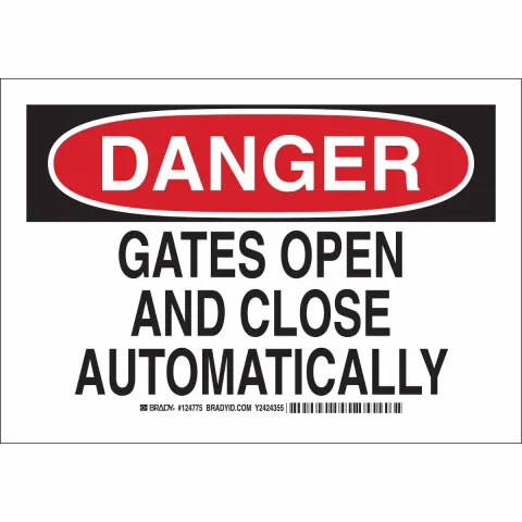 Brady 124776 "Danger Gates Open and Close Automatically" Sign Aluminum Black Red on White 10" x 14"