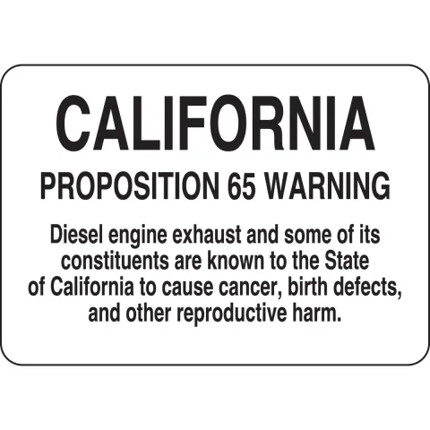 Brady, 125609, "California Proposition 65 Warning Diesel Engine Exhaust and Some of Its Constituents" Sign Polyester with Polyester Overlaminate Black on White 7" x 10"