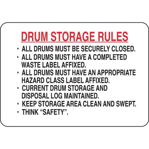 Brady 125632 "Drum Storage Rules All Drums Must Be Securely Closed" Sign Polystyrene Black Red on White 7" x 10"