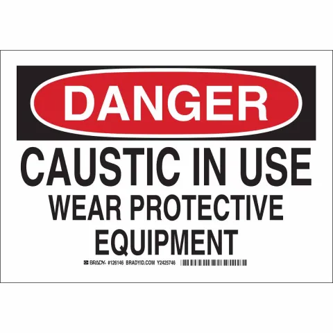 Brady 126149 Sign "Danger Caustic in Use Wear Protective Equipment" B-302 Polyester with Polyester Overlaminate 10"x14" Black Red