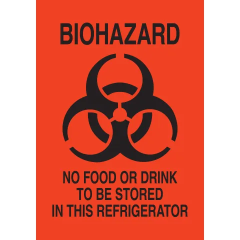 Brady 126635-A "Biohazard No Food or Drink to Be Stored in This Refrigerator" Sign Vinyl Black on Orange 14 in x 10 in