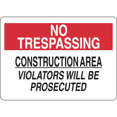 Brady, 126857, Sign "No Trespassing Construction Area Violators Will Be Prosecuted" B-302 Polyester w/ Overlaminate 10 in x 14 in Black Red on White