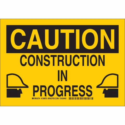 Brady 126874 "Caution Construction in Progress" Sign Polystyrene Black on Yellow 10" x 14"