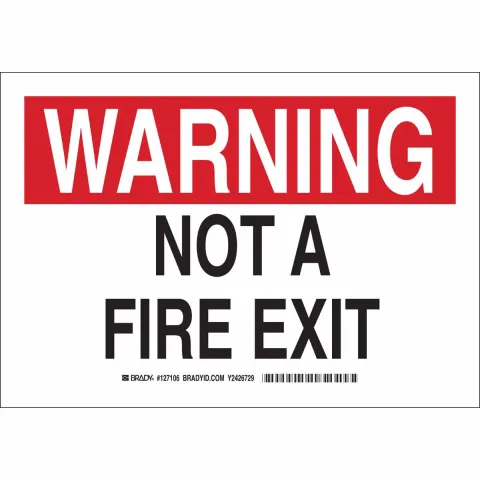 Brady 127107 10 in H x 14 in W Black, Red on White Aluminum Sign "Warning Not A Fire Exit"