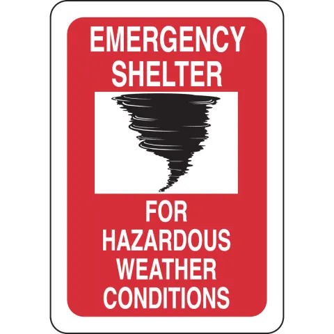 Brady, 127163, "Emergency Shelter for Hazardous Weather Conditions" Sign Polyester with Polyester Overlaminate Black Red on White 14" x 10"