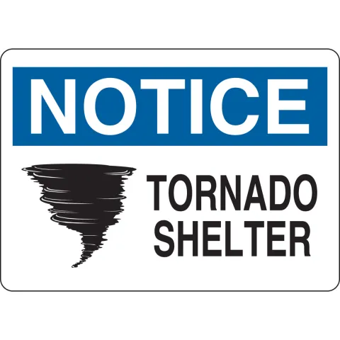 Brady 127353 10 in H x 14 in W Black, Blue on White Aluminum Sign "Notice Tornado Shelter"
