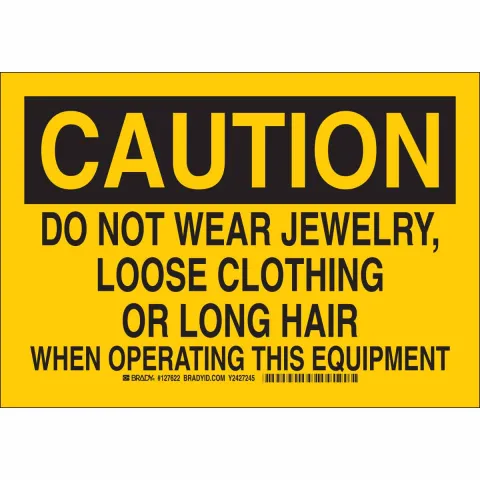 Brady 127625 "Caution Do Not Wear Jewelry, Loose Clothing or Long Hair" Sign, 10" x 14"