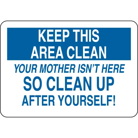 Brady 128275 7 in H x 10 in W Blue on White Polystyrene "Keep This Area Clean Your Mother Isn't Here So Clean Up After Yourself!" Sign