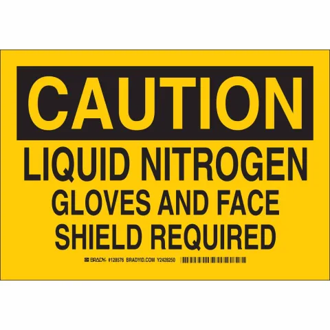 Brady, 128576, "Caution Liquid Nitrogen Gloves and Face Shield Required" Sign Polyester with Polyester Overlaminate Black on Yellow 7" x 10"