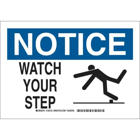 Brady 129120 "Notice Watch Your Step" Sign Aluminum Black Blue on White 7" x 10"