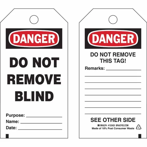 Brady 132425 "Danger Do Not Remove Blind" Isolation Blind Tags Polyester Black Red on White 5.75" x 3"