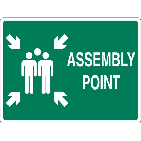 Brady 139583 10 in H x 14 in W Green on White Aluminum Sign "Assembly Point", with Pictogram