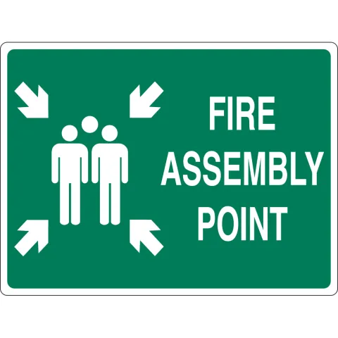 Brady 139592 10 in H x 14 in W Green on White Aluminum Sign "Fire Assembly Point", with Pictogram