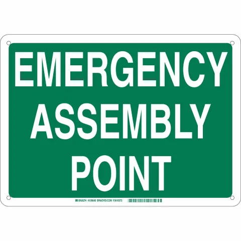 Brady 139640 10 in H x 14 in W Green on White Fiberglass Sign "Emergency Assembly Point"