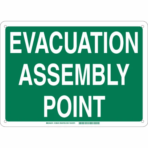 Brady 139655 10 in H x 14 in W Green on White Aluminum Sign "Evacuation Assembly Point"