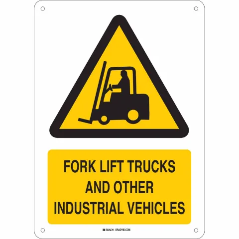 Brady 139905 "Forklift Trucks and Other Industrial Vehicles" Sign Aluminum Black Yellow on White 14" x 10"
