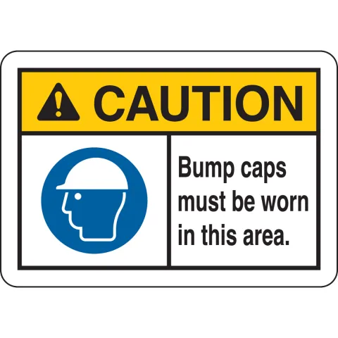 Brady 144172 "Caution Bump Caps Must Be Worn in This Area." Sign Aluminum Black Blue Yellow on White 10" x 14"