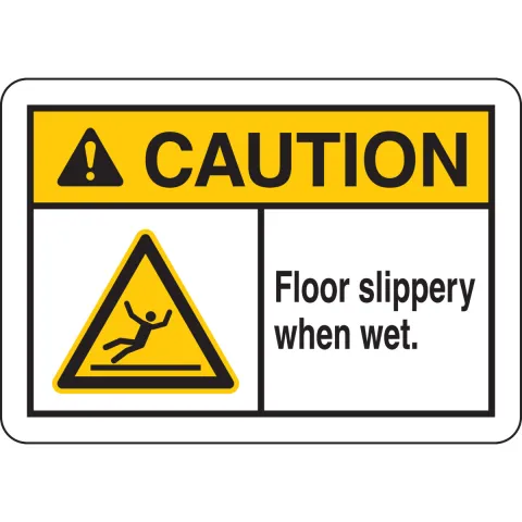 Brady 144716 "Caution Floor Slippery When Wet." Sign Aluminum Black Yellow on White 7" x 10"