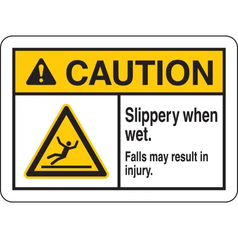 Brady 144760 "Caution Slippery When Wet. Falls May Result in Injury." Sign Aluminum Black Yellow on White 10" x 14"