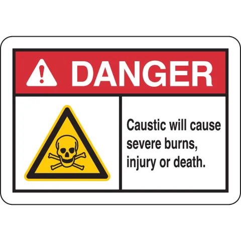 Brady, 144864, "Danger Caustic. Will Cause Severe Burns, Injury or Death." Sign Polyester with Polyester Overlaminate Black Red Yellow on White 7" x 10"