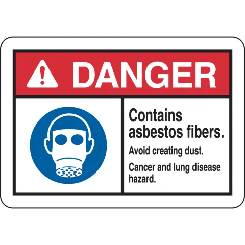 Brady, 144937, "Danger Contains Asbestos Fibers. Avoid Creating Dust. Cancer and Lung Disease Hazard." Sign Polyester with Polyester Overlaminate Black Red Blue on White 7" x 10"