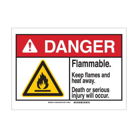 B302 7X10 ANSI RED, BLK/WHT FLAMABLE KEEP