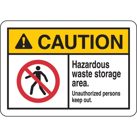 Brady, 145124, "Caution Hazardous Waste Storage Area. Unauthorized Persons Keep Out." Sign Polyester with Polyester Overlaminate Black Red Yellow on White 7" x 10"