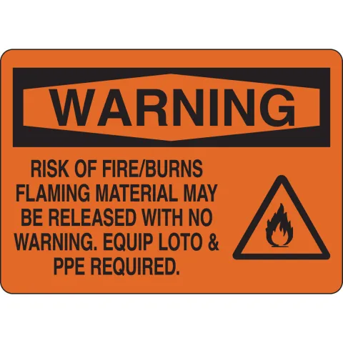Brady 145636 10 in H x 14 in W Black on Orange Polystyrene Sign, "Warning Risk Of Fire Burns Flaming Material May be Released..."