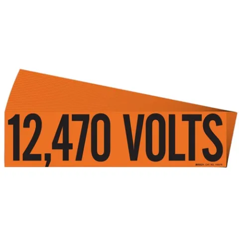 Brady 152313 12,470 Volts Conduit and Voltage Labels, Black on Orange, Vinyl Cloth, 2.25 in H x 9 in W, Pack of 25 Cards