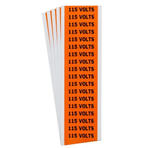 Brady 152383 115 Volts Conduit and Voltage Labels, Black on Orange, Vinyl Cloth, 0.5 in H x 2.25 in W, Pack of 5 Cards