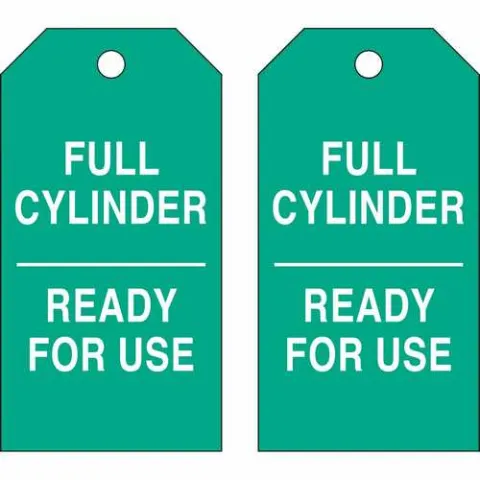 Brady 17925 Cylinder Status Tags "FULL CYLINDER READY FOR USE" Legend, White on Green, Paper, Not Laminated, 5.75 in H x 3 in W, Pack of 100 Tags
