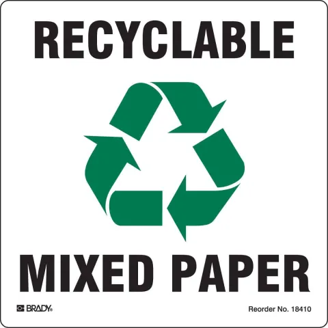 Brady 18410LFLS "Recyclable Mixed Paper" Labels Vinyl Black Green on White 10" x 10"
