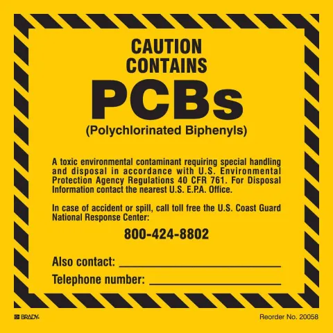 Brady 20058LS "Caution Contains PCBs" Labels, 6" x 6", Pack of 10 Labels