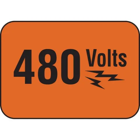 Brady 20935 "480 Volts" Sign, Black on Orange, 3.5" x 5"
