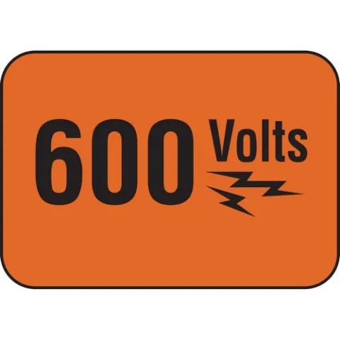Brady 20936 "600 Volts" Sign, Black on Orange, 3.5" x 5"