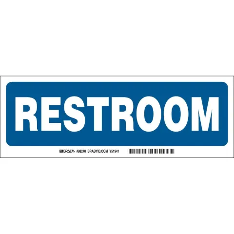 Brady 22275KLS "Restroom" Sign Polyester with Polyester Overlaminate White on Blue 3.5" x 10"